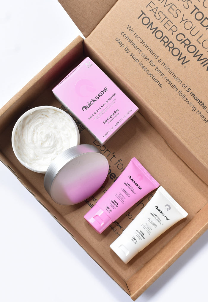 Other brands focus on “nourishing” your hair or body, but nourishment alone won’t give you the hair growth speed you are looking for. That’s where Quick Grow is different. Our collection of products use science backed ingredients in the form of supplements to speed up hair growth internally, shampoos and conditioners that help encourage more hair into a healthy growing cycle after every wash and treatments to protect your hair from damage so that you can achieve longer, faster growing hair guaranteed.