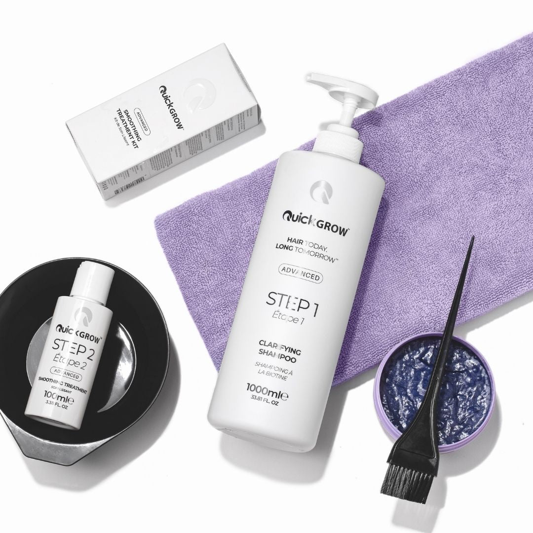 The Quick Grow Smoothing Treatment is a next-generation, non-toxic hair smoothing system powered by BioAffinity™ Technology. It smooths frizz, boosts shine and strengthens damaged hair — without using toxic chemicals or causing permanent damage or heaviness.