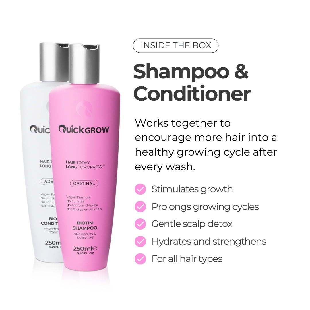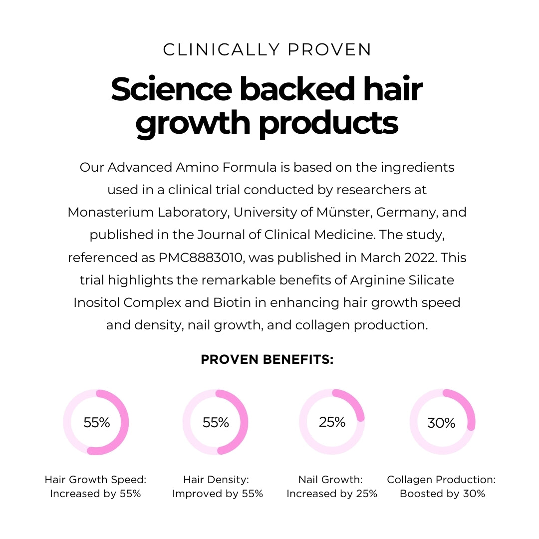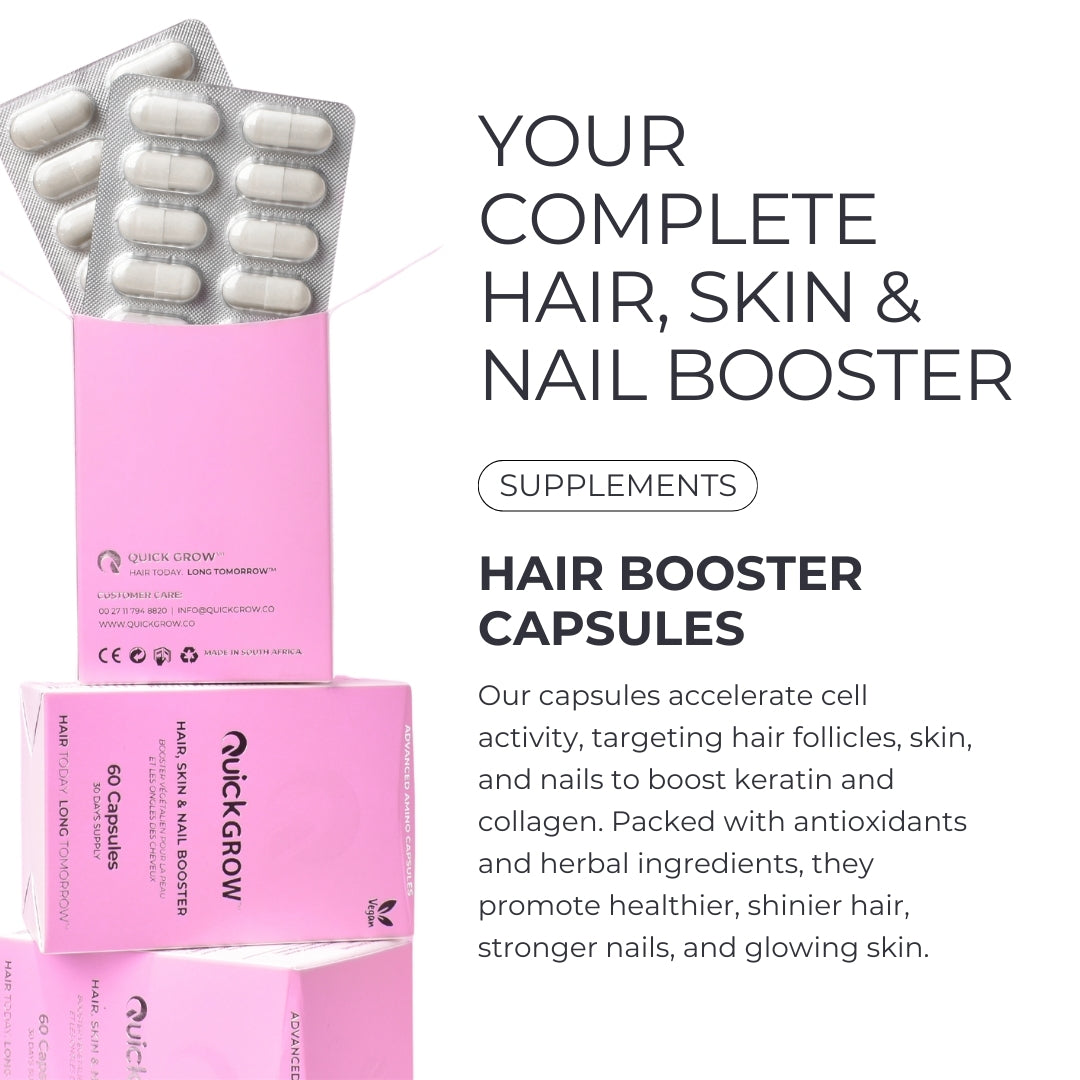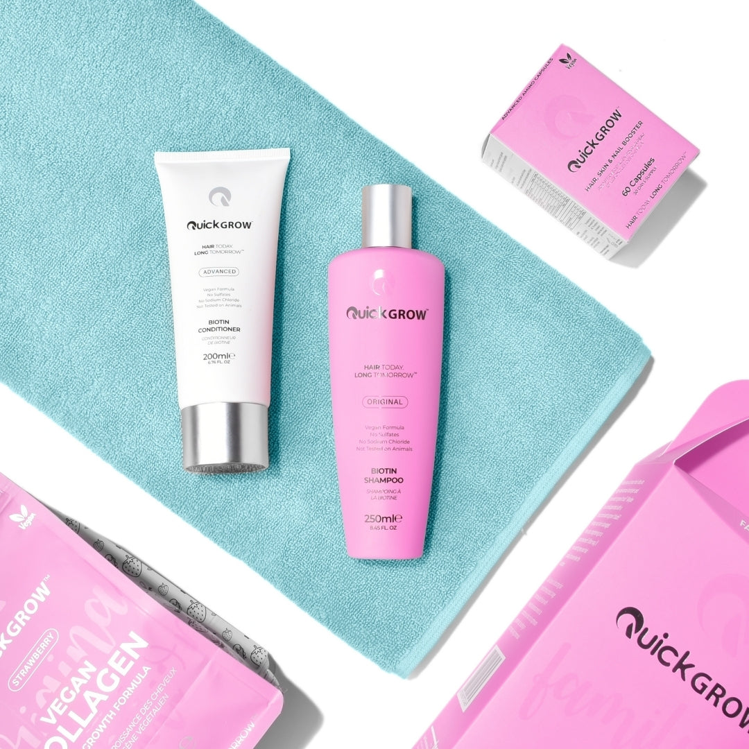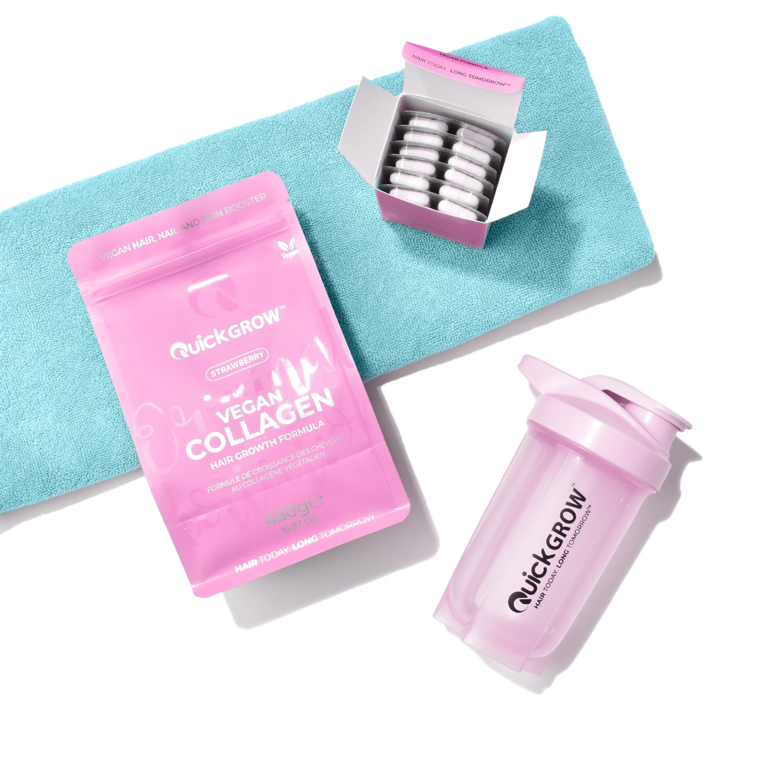 Treat your hair to a month's supply of hair growth goodness with our Original Family Combo for natural & colour treated hair. Start your day with 2 hair growth capsules, enjoy our yummy guilt-free strawberry collagen in the afternoon and wash your hair every 2 - 3 days with our deliciously fragranced pink apple scented hair growth shampoo and conditioner. Get ready to say "hello" to your longer, faster growing hair!