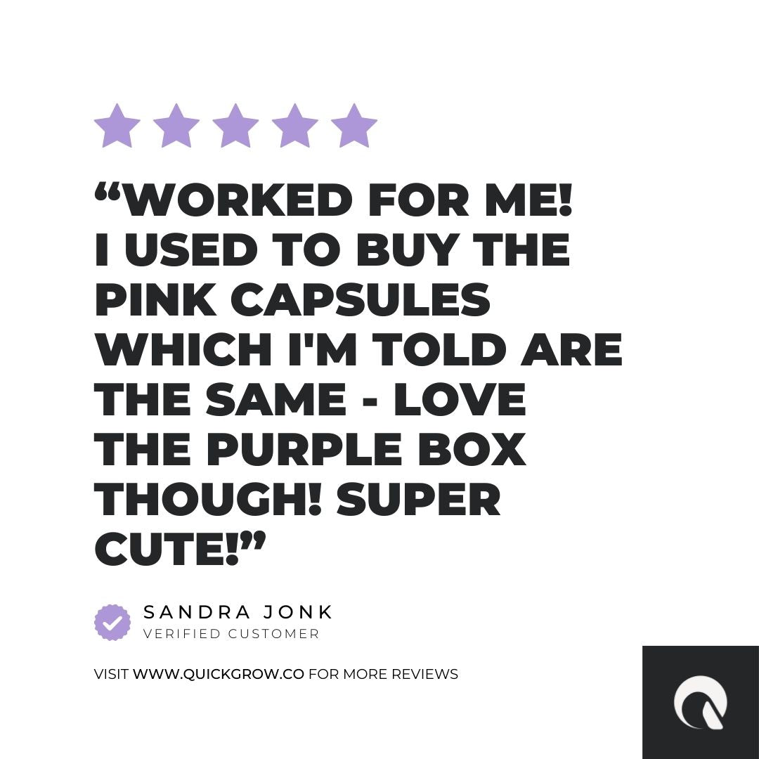 These capsules have the same awesome actives and ingredients as the pink capsules — just in a cute purple box! They'll supercharge your hair growth speed and density by up to 55%, plus give your skin a 30% boost in collagen synthesis. Get ready for stronger, faster growing hair and nails and more radiant skin!