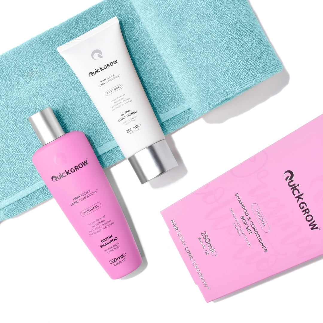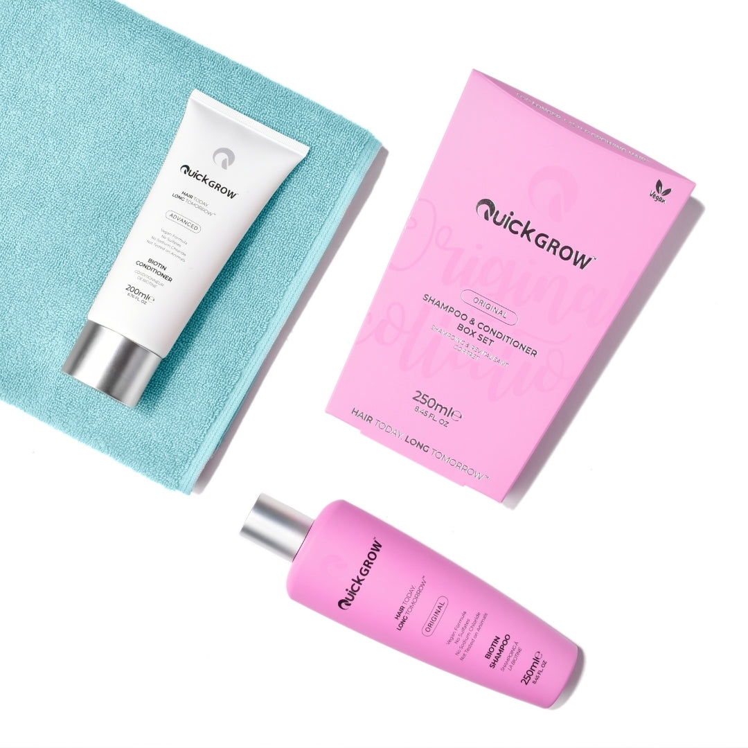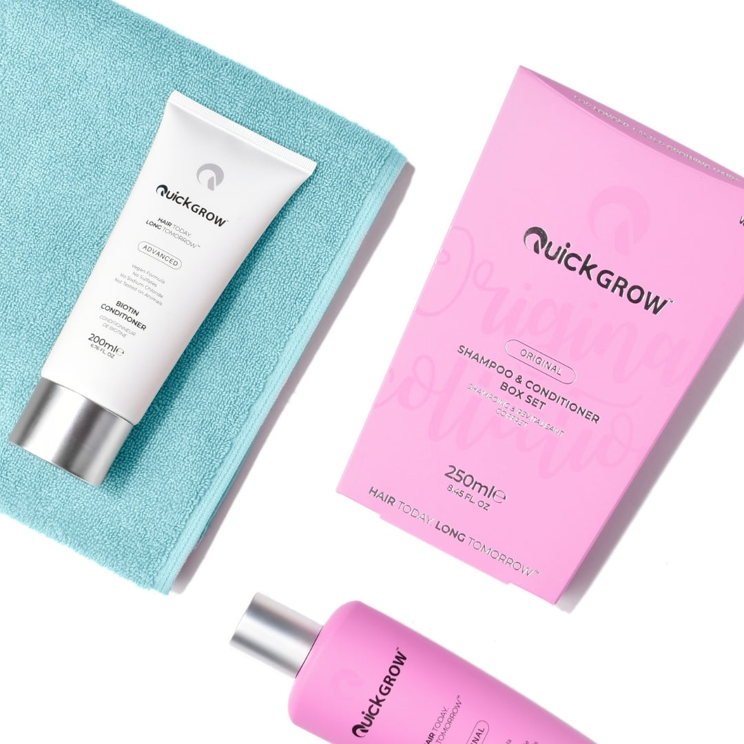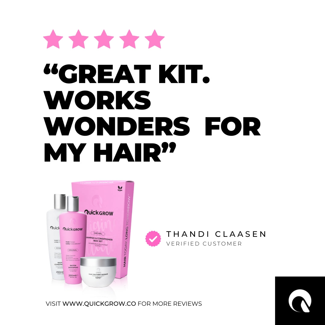 Ready to elevate your hair game? Meet our Quick Grow Shampoo, Conditioner, and Hair Masque Bundle—your all-in-one solution for faster hair growth, improved density, boosted shine, and luxurious softness. These 3 products work together to encourage more hairs into a healthy growing cycle, and intensely hydrate and treat your hair from the inside out after every wash.