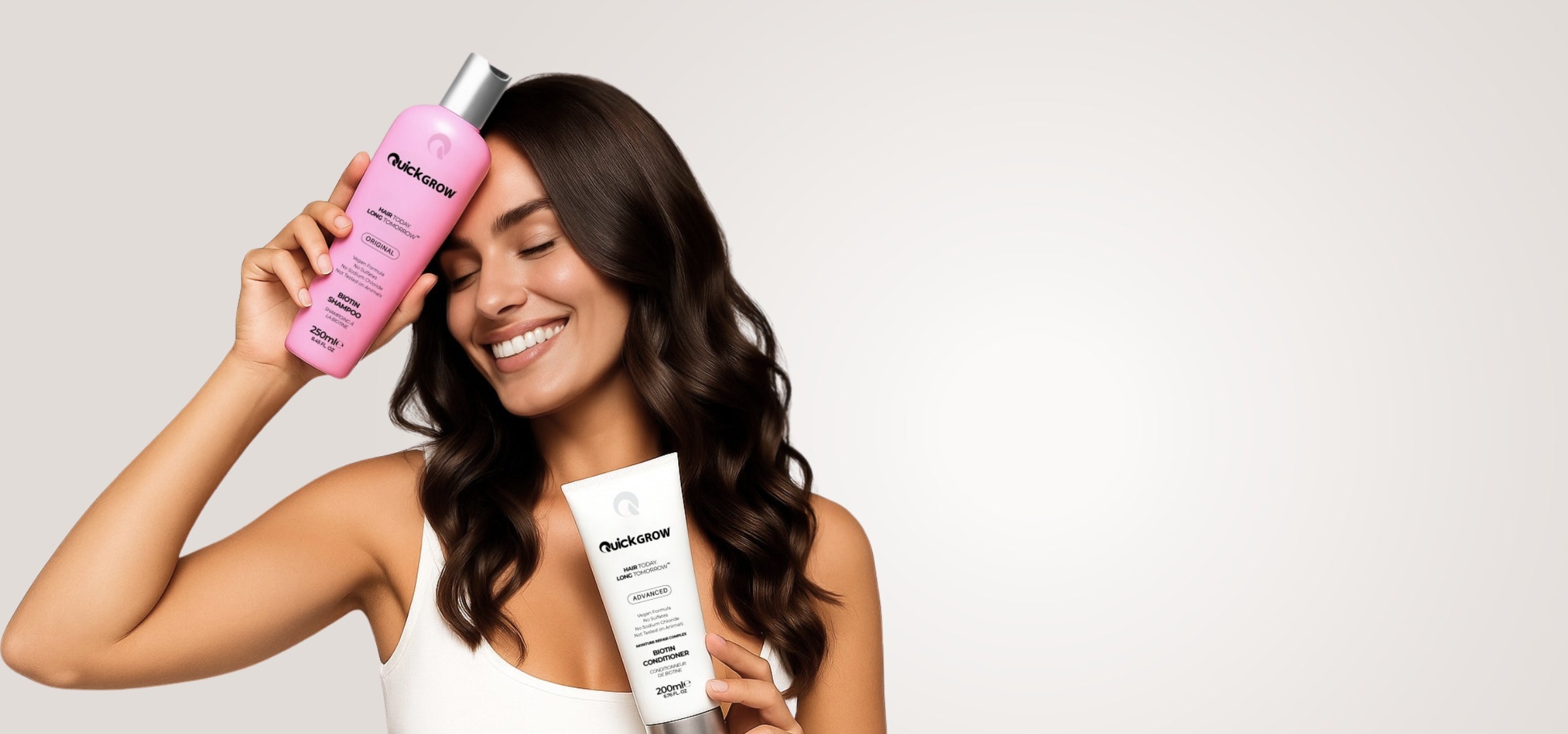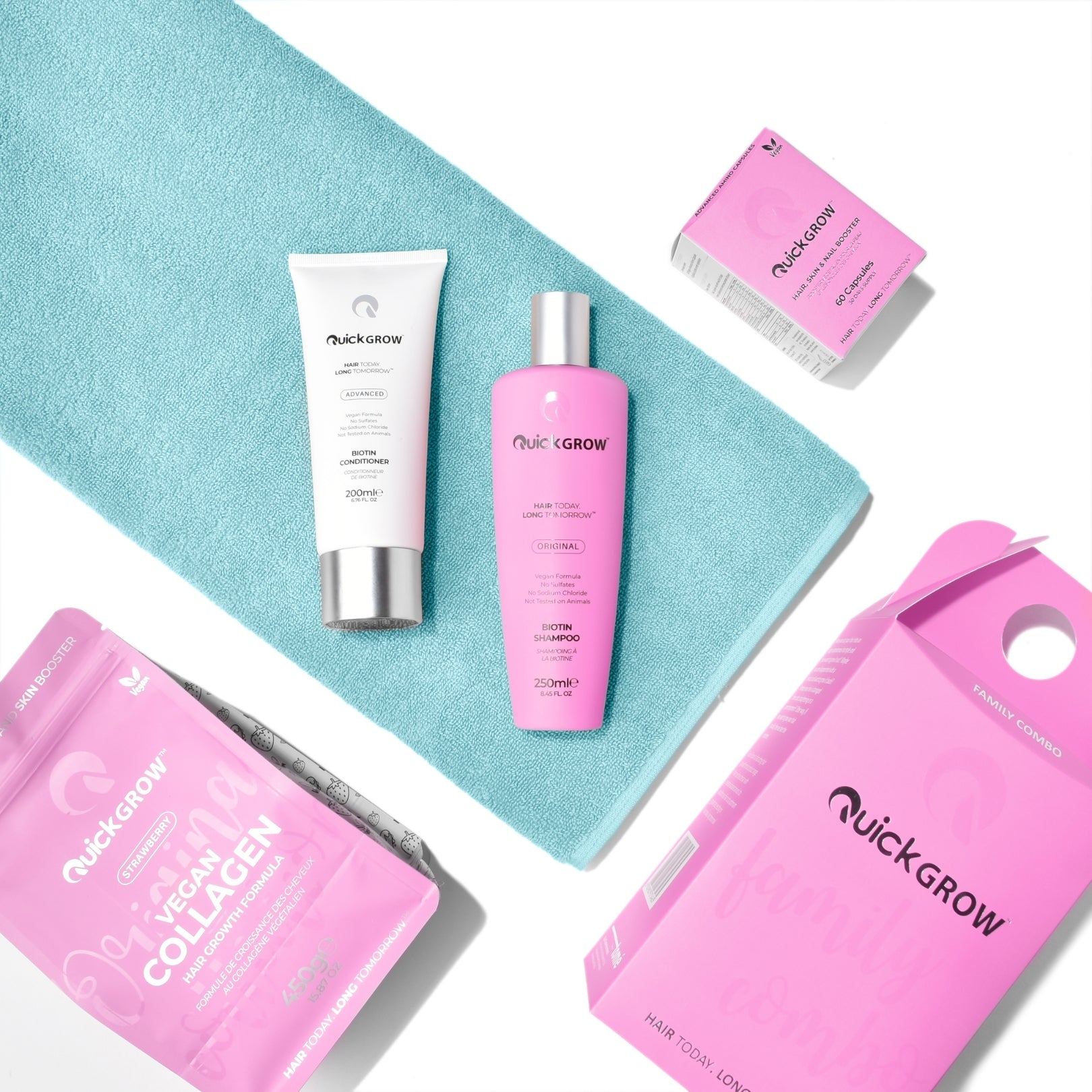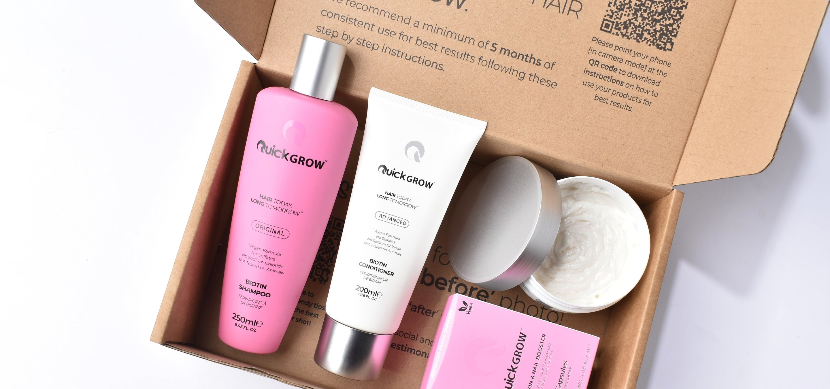 Other brands focus on “nourishing” your hair or body, but nourishment alone won’t give you the hair growth speed you are looking for. That’s where Quick Grow is different. Our collection of products use science backed ingredients in the form of supplements to speed up hair growth internally, shampoos and conditioners that help encourage more hair into a healthy growing cycle after every wash and treatments to protect your hair from damage so that you can achieve longer, faster growing hair guaranteed.