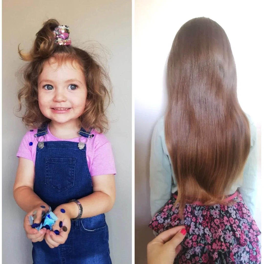 "Her hair is now an amazing 46cms and she gets compliments on her beautiful hair every time we go somewhere! She is so proud of her hair and can't wait for it to grow to the ground as she says 🤩🤗”